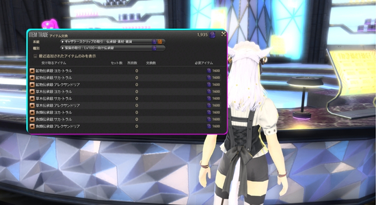 - スクリップ取引窓口NPCで「ギャザラースクリップの取引:素材・雑貨」を選択